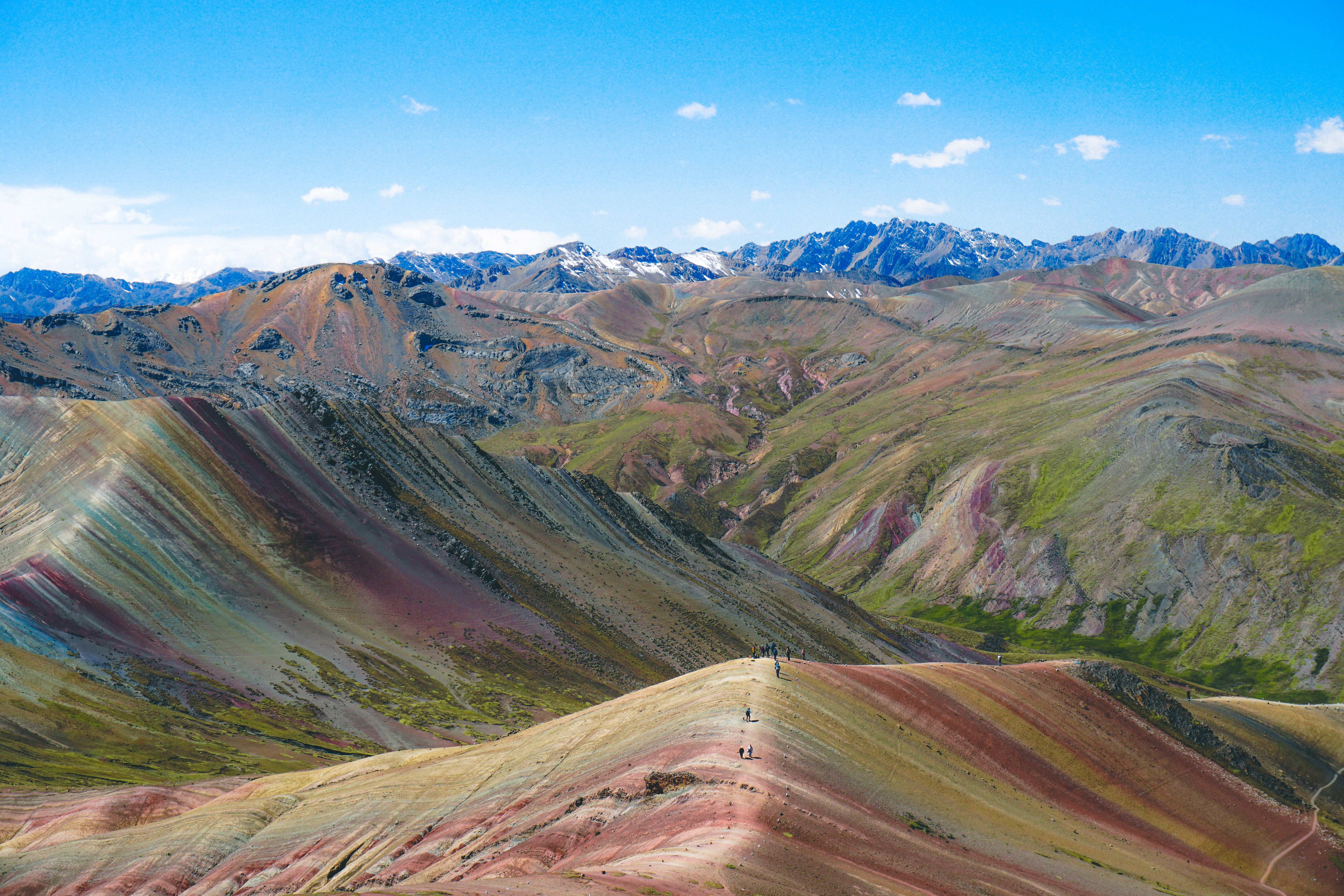 在距离秘鲁库斯科车程三个半小时的安第斯山脉,海拔4800米的地方,隐藏着一片鲜为人知的彩虹山,Tres Rainbows ,又名Palccoyo Rainbow mountain。